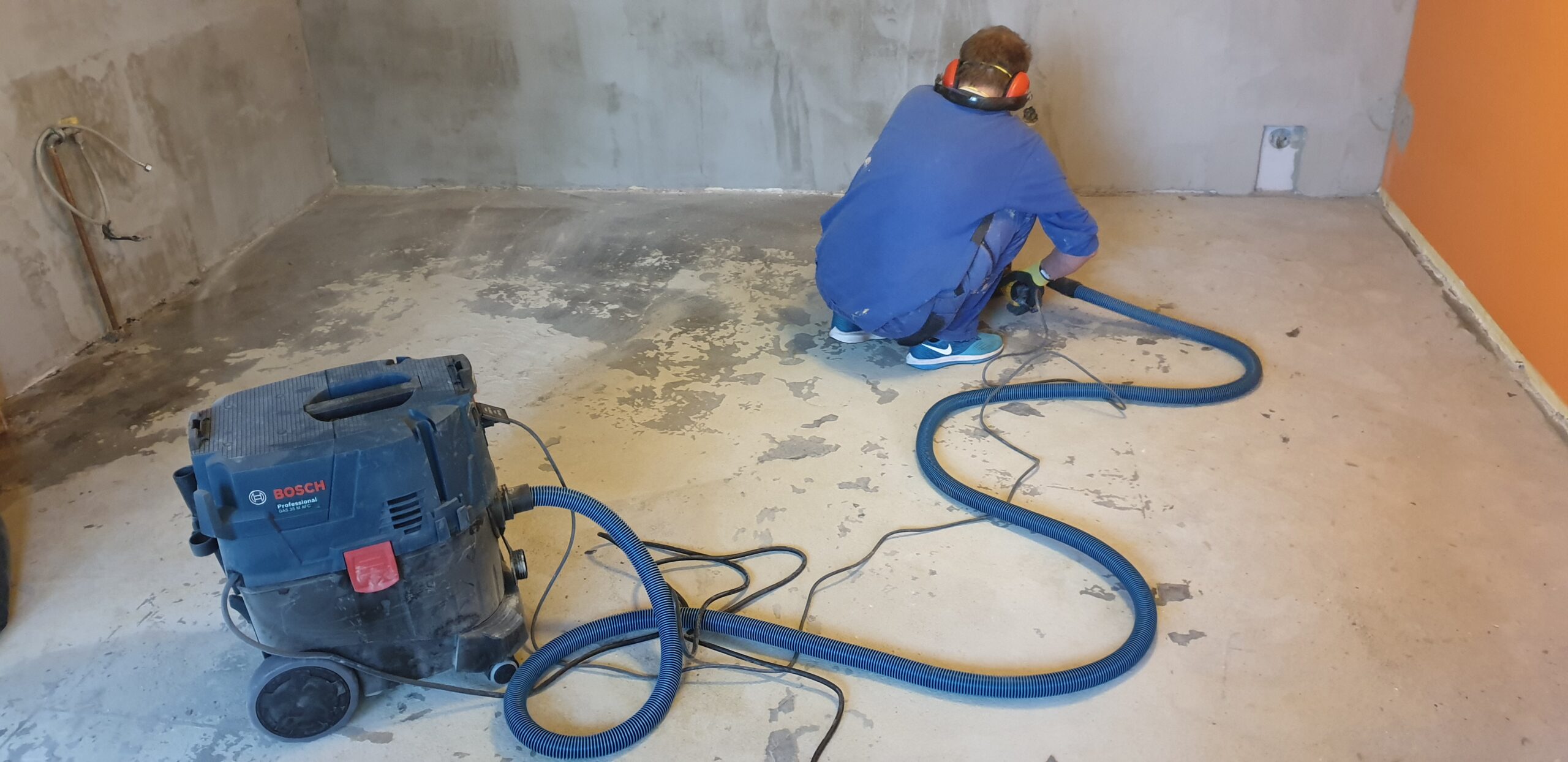 Pokládka vinylové podlahy s přípravou podkladu (demontáž stávající krytiny, broušení betonu, penetrace na zpevnění betonu, nivelace)
